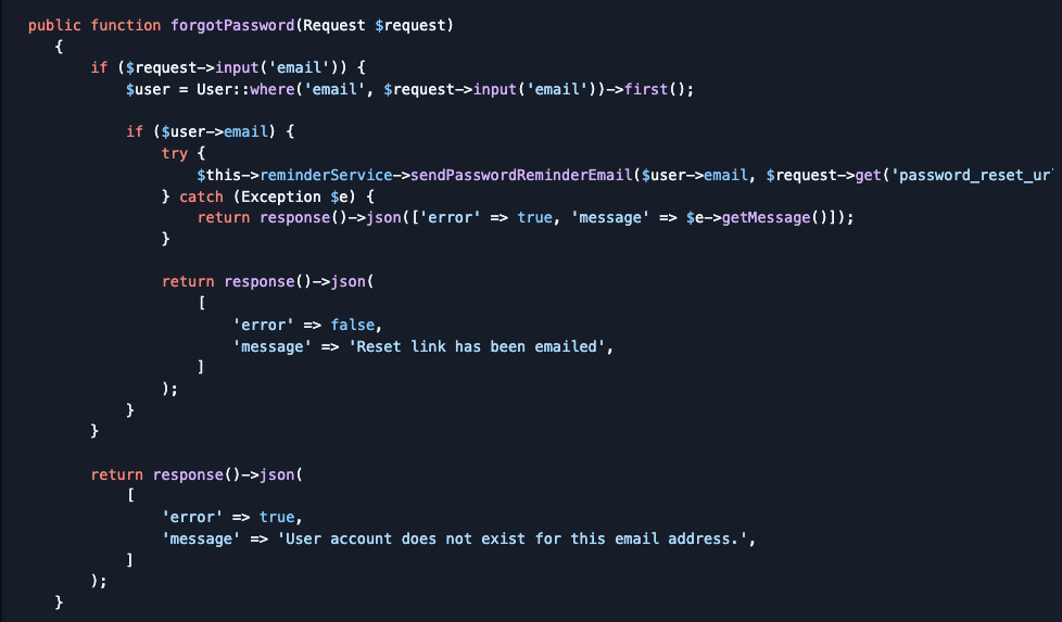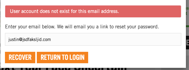 - Why: The intent is to inform the user if they typed their email correctly, but in doing so, the application confirms which email addresses are tied to a registered account.