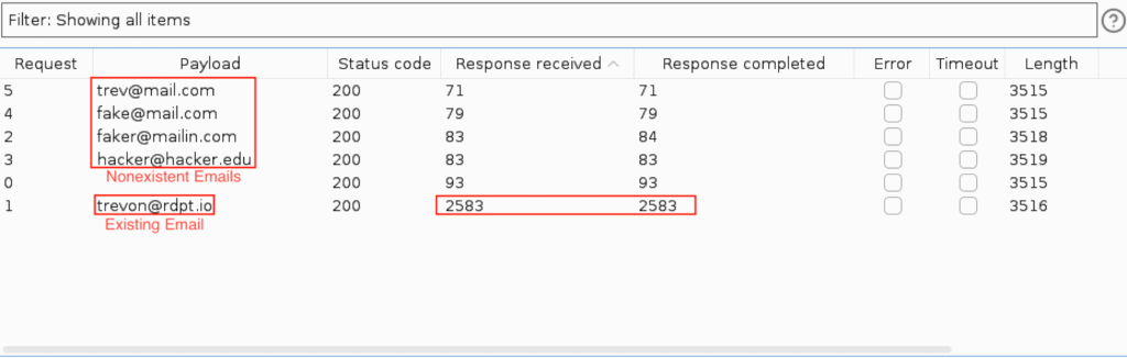 - How it shows up: Similar to login, this endpoint often gives unique responses for an existing email address compared to a non-existing one, or provides specific error messages revealing account status.